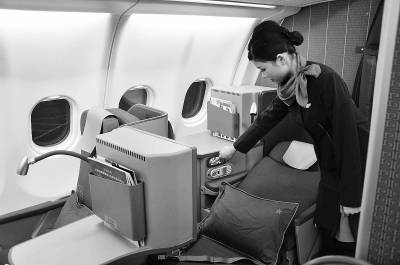 2月14日,香港航空引进的中国首架全商务舱客机亮相上海虹桥国际机场,该飞机计划于今年3月7日起正式投入运营,每天一班直航往返于香港与伦敦。本报记者 周凯摄