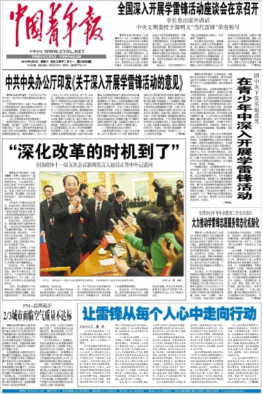 中共中央办公厅印发《关于深入开展学雷锋活动的意见》