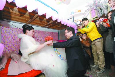 “我在湖大当了15年的管理员了,第一次看到有学生出嫁。”湖北大学五栋宿舍的管理员刘雪琴说,这几天,她忙着剪大红“囍”字,扎彩色气球,还连夜加工了一个“地毯绣”,争取为宋振华筹备一场特别的婚礼。