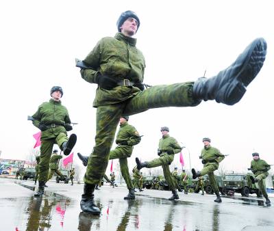 4月10日,俄罗斯莫斯科,士兵们正在为即将到来的胜利日红场阅兵彩排。CFP供图