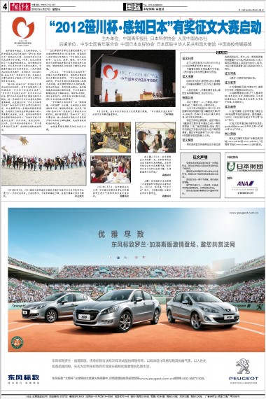“2012笹川杯·感知日本”有奖征文大赛启动