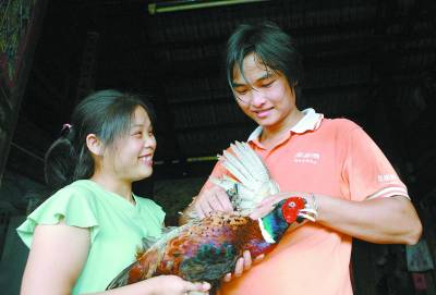 6月14日,广西大苗山深处,融水苗族自治县安陲乡大段村立新屯,吴金明和妻子吴桂兰为野鸡打防疫针。今年29岁的吴金明2008年毕业于中国农业大学。2010年7月,他东筹西借投入13万元在家乡建起林下生态养殖场,采取放养和原粮饲养的模式,在竹林下饲养土鸡、贵妃鸡,并尝试养殖孔雀、驼鸟和山鸡,成了苗山深处罕见的“鸡头”。龙涛摄