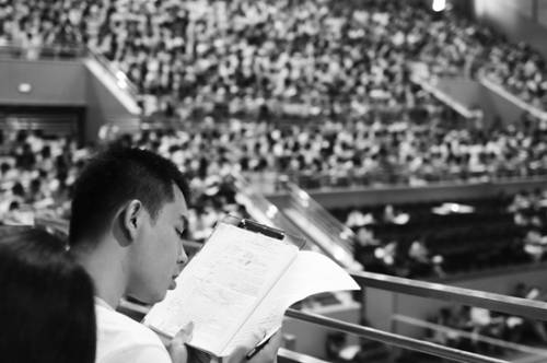 炎炎盛夏,济南黄亭体育场座无虚席,号称全国最大的考研辅导班正在上课,近4000名本科生汇聚一堂接受集训。CFP供图