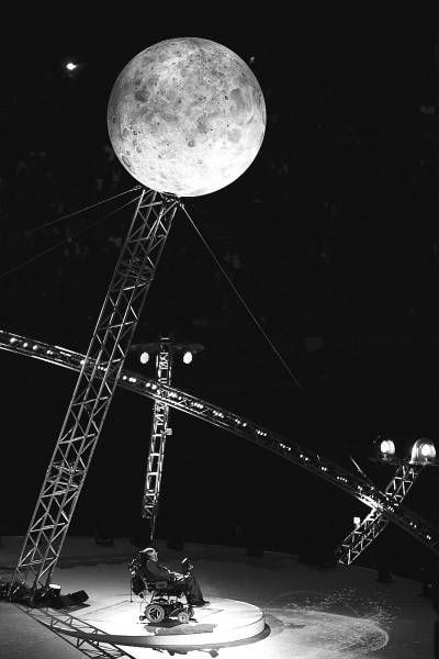 2012年9月1日这天,天才科学家史蒂芬·霍金的媒体联络员电话老是占线,只是采访话题和科学无关。记者们像访问好莱坞明星一样,追问这位大科学家,昨天演出感觉怎么样? 这是霍金第一次参与舞台演出。在2012伦敦残奥会开幕式上,他身着皱巴巴的灰色西服率先出场。透过电子解码,这位70岁的老人平静地说:“不要低头盯着你的脚下,抬头看看星空吧!” “演出结束后,霍金教授第二天早上已经回到了剑桥。”负责霍金媒体事务的剑桥大学媒体主管提姆·霍尔特对中国青年报记者说,“能够参与到残奥会开幕式中,在科学和艺术之间架起桥梁,霍金感到高兴且自豪。” 霍金并不是这场开幕式唯一的大牌明星。这场开幕式汇集了许多响当当的名字——不仅能看到霍金跟电子乐队Orbital同台表演,发现“上帝粒子”的欧洲大型强子对撞机也以雨伞舞的形式登上了舞台,而在场的每个人手里都捧着一个“来自牛顿”的红苹果。 这场“科学大腕”云集的开幕式让伦敦残奥会成了第二天报纸争相报道的头条新闻,就连热衷绯闻八卦的英国《镜报》都拿出头版报道,“昨晚的开幕式满是惊喜和启迪,让我们沉浸在思考中”。 “保持好奇,因为如果你失去了好奇心,那要比放弃更可怕。” 在这场处女秀中,被誉为爱因斯坦之后最杰出的理论物理学家霍金坐在轮椅上,一束光打在舞台中央。他的背后悬挂着表面坑坑洼洼的灰色月球模型,这是向刚刚去世的人类首位登月宇航员阿姆斯特朗致敬。 通过面前的黑色电脑,霍金发出颤巍巍的声音:“保持好奇,因为如果你失去了好奇心,那要比放弃更可怕。” 体育场顶端的大屏幕上,播放着这位当代著名广义相对论和宇宙论科学家的特写。但画面上的主人公既没有动作,也没有表情。霍金21岁就因为患卢伽雷氏症坐上轮椅,仅有三根手指可以活动。1985年,他又因穿气管手术失去了说话的能力,只能通过语音合成器来表达思想。 为了邀请这位大牌科学家,伦敦残奥会组委会早在去年11月份就向这位英国剑桥大学应用数学及理论物理学系教授发出邀请。 “他们先跟教授发了邮件,此后又举行过几次会面和彩排,最终确定了演出计划。”霍尔特解释说,“霍金教授接到邀请后非常开心,他是名科学家,但有机会跟艺术家合作,为残奥会做些事情,也让他备感荣耀。” “开幕式的主题是‘启蒙’,我们希望它能够在带来精彩演出的同时,饱含人文关怀。”开幕式导演布莱德利·海明斯解释。 另一位导演珍妮·塞利表示,“一般来说,残奥会不会得到其他比赛那样的重视”,尤其是在奥运会开幕式后。在本届奥运会开幕式上,数不清的流行音乐明星轮番上台表演,《哈利·波特》的作者在舞台上讲故事,连憨豆先生都登台献艺…… 相比之下,在残奥会开幕式演出开始前,一切似乎都在引向一场寒酸的演出——据报道,残奥会开幕式的经费只有奥运会开幕式的三分之一,节目单上最知名的明星是出演电影《指环王》的配角“甘道夫”,就连随门票赠送的礼物都十分简陋,每位观众只能得到一个苹果。 天公也不作美。开幕式这天,被称为“伦敦碗”的奥林匹克体育场已经陷入秋寒,前去报道的记者们端着热水杯瑟瑟发抖,不得不穿上毛衣保暖。 在开幕式前的记者招待会上,双耳失聪的女导演塞利承认,面对即将开始的演出,她和海明斯“有点紧张,有点害怕,但也有点兴奋”。 据说,得知自己可以参与残奥会开幕式的时候,塞利正在日本旅游:“这个任务大到我想都想不出来。当时我的第一个念头是,我得赶紧出去买杯酒喝。” 神秘嘉宾霍金成为一张王牌。一场原本属于体育赛事的开幕式,被设计成一个小女孩探索世界的故事。小女孩名叫米兰达,是莎士比亚戏剧名篇《暴风雨》的主人公。她将会从天而降,在霍金的指引下开始一场“探索之旅”。 这场旅行伴随着开幕式倒计时开始。每一秒的倒数都搭配着一张天文图片,从银河系到太阳系,从星云到地球,在嘀嗒的声音里,霍金登场。 在舞台另一端,一个燃烧着的火球从高空落下,象征着大约150亿年前的宇宙大爆炸。这也是霍金最知名的理论之一。按照这一理论,大爆炸后,物质向外膨胀形成宇宙,先后诞生星系团、星系、银河系、恒星和太阳系,以及包括地球和人类在内的一切。 只见火球着地后舞台周围烟花齐放,聚集周围的600把白色雨伞突然散开,继而迅速陷入黑洞般的沉寂。 世界上最盛大的咬苹果表演,向牛顿致敬 当霍金说话时候,腿部有残疾的小女孩米兰达正坐在轮椅上,从高空缓缓滑向舞台中央。她眨着大眼睛,扭头打量着周围的一切,代表宇宙大爆炸的雨伞还在旋转着,场内出现了一只充满力量的跳动球体,那代表着刚刚被公布发现的希格斯粒子。 站在舞台中央的歌手唱着一首歌颂科学的新歌《原理》:“啊,原理,我们这样寻觅你,越过时间的边界,我们看到自己,恐惧却好奇,正如霍金所说,仰望星空,仰望星空!” “米兰达,去沉浸在科学和宇宙的魔力之中吧!”穿着蓝色长袍的演员伊安·麦克莱恩大声说着,声音在“伦敦碗”里回荡。在开幕式中,这位《指环王》中的“甘道夫”是另一位米兰达的指引者。 看到这一切,和莎翁笔下的主人公一样,米兰达高声喊着:“啊!多么美丽的新世界!” 在聚光灯的照射下,一本大书翻开摊在地上。米兰达忍不住从轮椅里走出来,爬上这本好几米高的书上,拄着拐杖快步走向舞