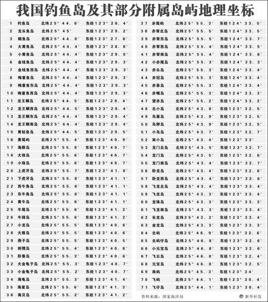 我国钓鱼岛及其部分附属岛屿地理坐标