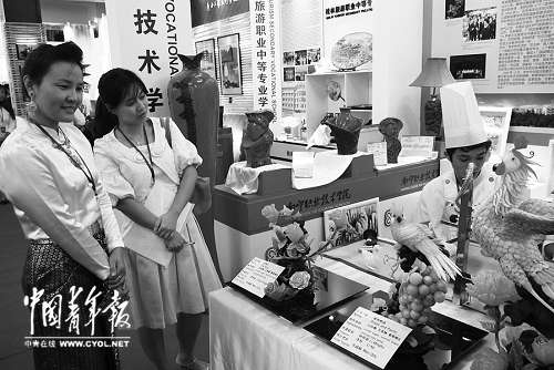 9月21日,在2012中国-东盟职业教育联展上,南宁职业技术学院烹饪工艺与营养专业学生精美的糖艺作品吸引了来自泰国的师生参观交流。 本报记者 谢洋摄