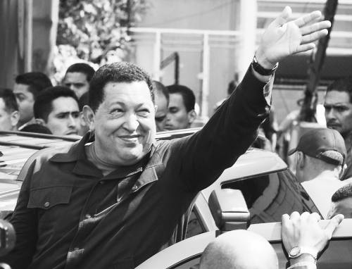 10月7日,在委内瑞拉首都加拉加斯,委内瑞拉总统查韦斯投票前向支持者挥手。