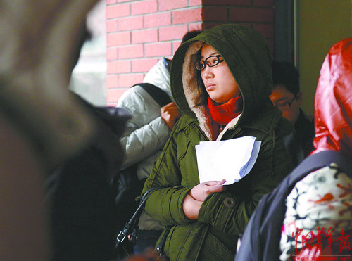考生提前一个多小时守候在考场外