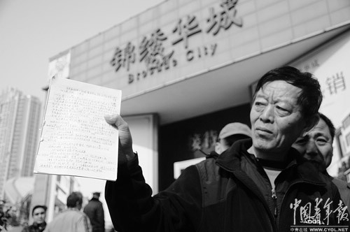 过了两年清闲的退休生活后,从今年9月开始,62岁的青岛市民闫伟忠重新“上岗”了——每天上午,他都会和20多名邻居一起到一家房地产企业的售楼处门口拉横幅、堵房门,抗议开发商的欺诈行为,就像上班一样。 “我们是拆迁安置户。拆迁协议上明明写着安置商品房,当初我们也是按照商品房的价格付的款,今年3月办房产证,发现竟然只能拿经济适用房的房产证。开发商中间还一再承诺是商品房,这是明显的欺诈行为。”站在青岛锦绣前程房地产开发公司的门口,闫伟忠不时向路人讲述自己的遭遇。 出商品房的价,买的竟是经适房,包括闫伟忠在内的91户拆迁户认为自己“吃了大亏”。然而,实施拆迁的开发商——青岛锦绣前程房地产开发公司认为自己也是“受害者”,“没法解决拆迁户的问题”。 为何双方都称自己是受害者?纠纷背后有何隐情?中国青年报记者对此展开了调查。 花商品房的价买了经适房 2006年11月,闫伟忠等人所在的西吴家新村(延吉路片)启动城中村拆迁改造工程,青岛热电新兴房地产开发公司(系青岛锦绣前程房地产开发公司前身——记者注)负责实施此项工程。 热电新兴公司致被拆迁居民的公开信显示,此项拆迁采取货币补偿和房屋补偿两种形式,其中房屋补偿又分两种情况——就地安置和异地安置。就地安置房源为旧村所在地将建起的锦绣华城小区,异地安置房源为安达路3号将建起的安达公寓。此项工程涉及的300多户拆迁户可自由选择上述补偿方式。 闫伟忠向记者介绍说,就地安置的房源是高层住宅,异地安置是多层住宅,考虑到高层公摊面积大,且异地安置的房源位置稍偏些,价格比就地安置的要便宜1000多元,所以包括他在内的91户选择了异地安置——他们将搬到安达路居住。 “当时开发商告诉我们,这两处安置房只是位置、楼高和价格的差别,产权属性上没有区别,都是商品房。这两个地方,拆迁户都是按照商品房的价格支付的房款。”闫伟忠告诉记者。 在热电新兴公司与拆迁户签订的安置补偿协议中,记者看到,拆迁户支付安置房款的标准是“按照房地产评估机构评估的新建房屋所在区域新建商品住房不同楼层的价格支付”。 按照当时的评估价格,就地安置(锦绣华城)的房屋均价为每平方米7200元,异地安置(安达公寓)的房屋均价为每平方米6200元。 2006年12月,拆迁户陆续搬离西吴家新村。住在租赁的过渡房中,闫伟忠等人天天盼着安达公寓尽快建好,他们好早点搬进新家。经过4年多的苦等,2011年3月底,他们终于拿到安达公寓安置房的钥匙。 然而,搬进新房的喜悦很快被一个惊人的发现所打破——在安达公寓的安置房上,有一个醒目的楼盘信息铭牌,其中“工程名称”一栏写着“安达路经济适用住房”。 这一消息,一下子让刚刚搬进新居的拆迁户们炸了锅:明明买的商品房,怎么就变成经适房了? 和闫伟忠一起天天去“上班”抗议的拆迁户杨学明告诉记者,他们看到铭牌信息后,马上找到开发商质问,但对方明确表示,拆迁户的安置房属于商品房,大家不用担心。 杨学明虽然半信半疑,但暂时也只能选择相信开发商,“等到办房产证时,就知道真假了”。 纸终究包不住火。2012年2月,锦绣前程公司通知安达公寓的拆迁户办理房产证,而且只能办理经济适用房产权证。 为解决问题,政府出台土政策 已搬入安达公寓的拆迁户不能接受这个事实。 杨学明给记者算了一笔账:2011年,安达公寓所在地块经适房均价为每平方米6200元左右,而此地段商品房均价已飙升到每平方米1.2万元左右。这意味着,产权属性不同,他们房屋的价值有着近一倍的差价。 他们感觉自己“被耍了”,大多数人没有办理房产证,选择了维权抗争。 面对维权的人群,锦绣前程公司给予的解释是,2007年8月,安达公寓房屋性质已经变更,土地属于划拨,不可能是商品房了。 开发商的这一说法激怒了拆迁户。他们质疑,既然开发商早就知道安达公寓是经适房,为什么不及时通知拆迁户?他们要求开发商或者恢复房屋的商品房属性,或者按市场差价给予赔偿。 与开发商协商无果后,2012年6月,很多拆迁户到青岛市市北区政府上访,市北区让他们去找青岛市国土资源和房屋管理局。后者告诉他们,经适房的属性不能更改,但安达公寓属于经适房中的拆迁安置房,上市交易不受影响。 青岛市国土资源和房屋管理局向他们出示了该局的一份文件【青土资房发(2011)595号】。这份发布于2011年8月的文件载明,“以经济适用住房名义用于安置拆迁的,其上市交易不受年限限制,首次交易时不需要缴纳土地收益金,土地使用权类型保留划拨,转让后再次上市交易的,每次均按成交价格总额的1%交纳土地收益金。” 依据这份文件,青岛市国土资源和房屋管理局认为,搬入安达公寓的拆迁户的权益没有受到损害,他们应该停止上访,接受现状。 但这份盖有政府公章的回复未能让拆迁户信服。他们质疑:“国家对经适房上市交易有明确的限制规定,青岛的这个政策能大过中央的规定?再说,我们当初拿的是商品房的价格,里面已经包括土地出让金的成本,现在却是划拨土地,我们支付的这笔土地出让金哪去了?” 在杨学明看来,青岛的这份政府文件虽然说明交易不受影响,但这种说明很可能不被市场认可。“我们卖房子时能拿着政府文件给买家说吗?现实情况是,一听说我们的房子是经适房,根本就找不到买家,就连房产中介