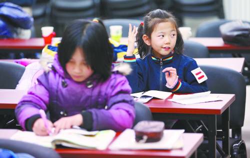 12月10日,北京亚运村安慧里社区,流动儿童“三好学堂”公开课上,一位女生举手请求社工“老师”的帮助。