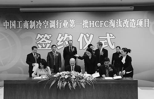 近日,珠海格力电器股份有限公司、浙江盾安人工环境股份有限公司、南京天加空调设备有限公司以及浙江商业机械厂四家企业与环保部对外合作中心、联合国开发计划署签订协议,作为第一批获得蒙特利尔多边基金支持的企业,就全面淘汰制冷剂HCFC(氢氯氟烃)做出承诺——至2015年12月,四家企业通过生产线改造等方式将减排HCFC约3000吨。这是第一批目标,其中仅格力一家就承担了2607吨减排任务。