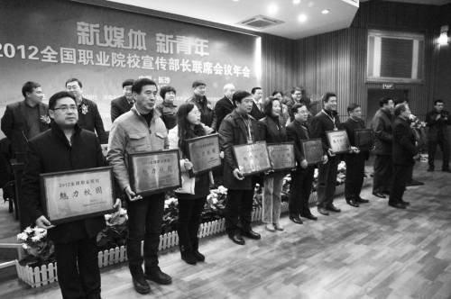 获得“2012全国职业院校魅力校园”称号的院校代表在领奖。