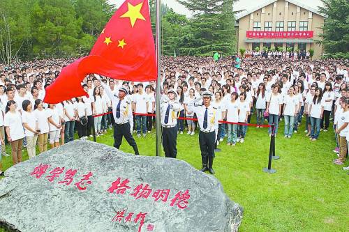2012年9月6日,国科大迎来首次开学典礼。近4000名新生代表在国旗下、校训前,立志传承精神与梦想。 平爱国摄