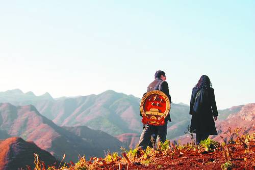1月23日,贵州省毕节威宁彝族回族苗族自治县金钟镇法庭的法官背着国徽。为了减少老百姓们长途跋涉诉讼的繁琐,自从2010年以来,金钟镇法庭就采取这种“流动法庭”的形式,翻山越岭,走村串寨,为当地老百姓处理各类案件360多件。杨文斌摄