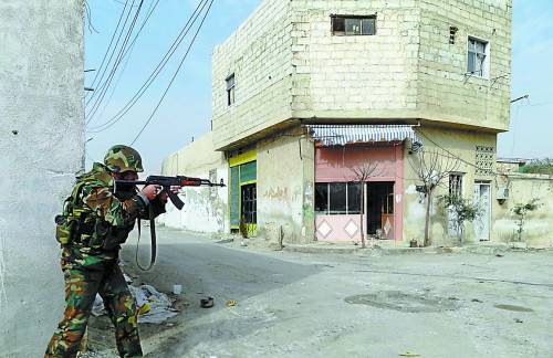 当地时间1月28日,叙利亚政府军士兵在大马士革达拉亚地区巡逻。联合国难民署当日发布报告说,逃到黎巴嫩寻求难民身份的叙利亚人已超过22.3万人,比上周增加了1.1万人。联合国人道主义事务协调办公室调查团负责人约翰·金呼吁国际社会加强努力,扩大叙利亚人道主义援助的规模。