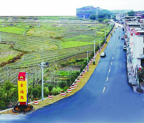 如今的“断头路”已经更名为“幸福路”。红底黄色的大路碑立在新建的公路边,十分醒目。大约6米多宽的崭新水泥路气派地伸进了沿途各村落,路中间一条黄虚线隔开了相向的车道,主路两侧栽种了桂花、香樟、万年松等树木近万株,建设排水沟10.6公里,新增路灯14盏,新增绿化面积2.5万平方米,幸福路成为横峰县第一条、也是惟一一条集硬化、亮化、绿化、美化为一体的农村公路。
