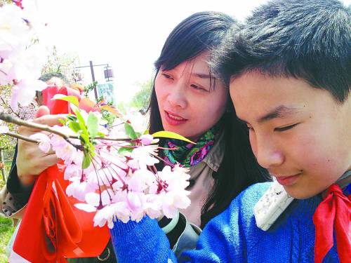 3月28日,来自江苏省苏州市盲聋学校的盲童学生用小手触摸柳枝、青草和花朵,乘座游船,感受春天气息。当日,由名城新闻网、华润万家组织的爱心公益活动触摸春天启动,10名盲童在苏州志愿者的陪护下,来苏州太湖国家湿地公园,用双手尽情触摸灿烂春天。李俊锋摄