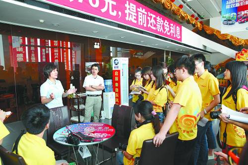 启辰专营店销售专员向大学生记者介绍启辰销售技巧。李庚伟摄