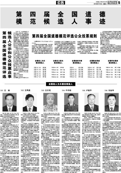 第四届全国道德模范评选候选人公示和公众投票启事