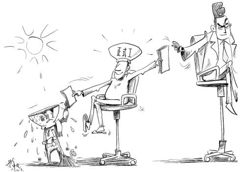 郑州有在编环卫工雇农村老人替其干活,他们月薪4000元左右,雇一个临时工每月只需1240元。(《京华时报》8月15日)漫画:徐简