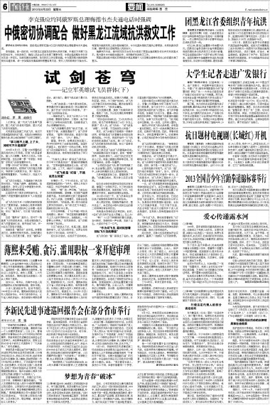 团黑龙江省委组织青年抗洪