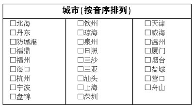 通过公示的城市和景区景点投票数已被清零,26个城市和27个景区景点展开决胜阶段的第二轮投票。决胜阶段将综合网络投票、线下调查、舆情监测和专家组意见,最后经大学生代表投票产生第八届“中国青年喜爱的(海洋)旅游目的地”(城市和景区景点各10名)。决胜阶段投票拟于10月18日截止,请参与者每次投票不少于5个城市和景区景点。 参与方式 1.回寄选票: 请在选票上用标出你喜爱的海洋旅游目的地,剪下寄回。 地址:北京市东城区东直门海运仓2号中国青年报社旅游周刊 邮编:100702 2.网络投票:网络投票请登录中青在线旅游频道(tour.cyol.com)活动专题页面。 3.微博投票:在新浪微博和腾讯微博关注中青报旅游周刊。加入话题:#青年评价#、#目的地#,写下您喜爱的旅游目的地并@中青报旅游周刊即可。 |