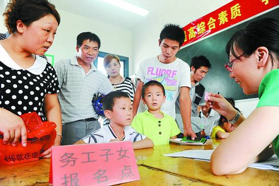 7月10日,在合肥市瑶海区和平小学花冲分校的“进城务工人员随迁子女入学帮你办”窗口,工作人员正在帮助进城务工人员子女办理相关手续。为解决好辖区进城务工人员随迁子女上学问题,享受公平优质教育,合肥市瑶海区教育部门开办进城务工人员随迁子女提前招生窗口,将入学报名时间与本城区学生进行同步,公布24小时服务电话,由专门的引导员负责引导帮助全程办理,并全程监督入学办理的全过程。王磊文 解琛摄