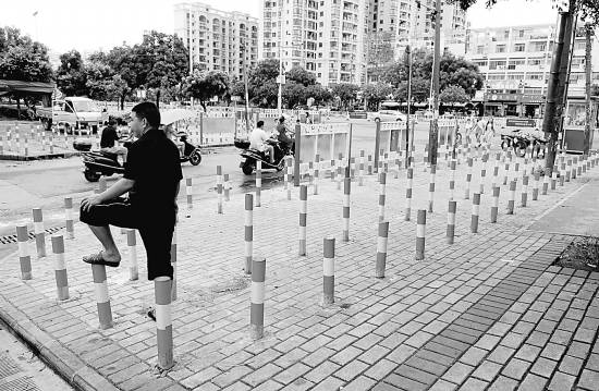 近日,在广西北海市四川南路和贵东路交会处,陆续冒出了密密麻麻、颇似梅花桩的警示桩。原来,近来针对露天烧烤摊引发的投诉不断,为此,北海市银海区城管局展开集中整治摊点乱摆乱卖的专项行动,“梅花桩”正是该局亮出的“奇招”。不过,在路边立这么多高低不一的柱子,显得有点奇怪。有网友调侃道:“难道这是要比武招亲的节奏?”CFP供图