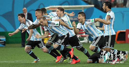 当地时间7月9日,在残酷的点球大战中,阿根廷队以4∶2战胜荷兰队,挺进决赛。特派记者 刘占坤摄