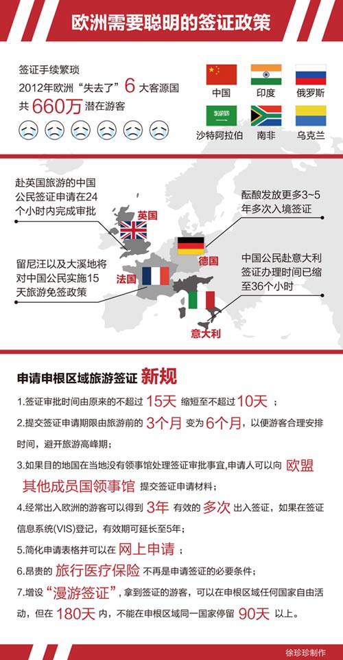 申根签证改革提案需经欧盟成员国和欧洲议会批准才能生效,因此最早也要等到2015年才能得以实施。不过,欧洲许多国家已经在签证办理政策上放开了手脚。