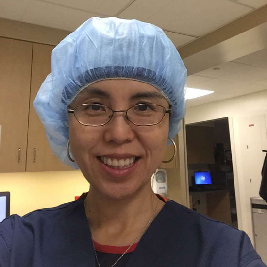 戴着防辐射帽子的刘秀实医生