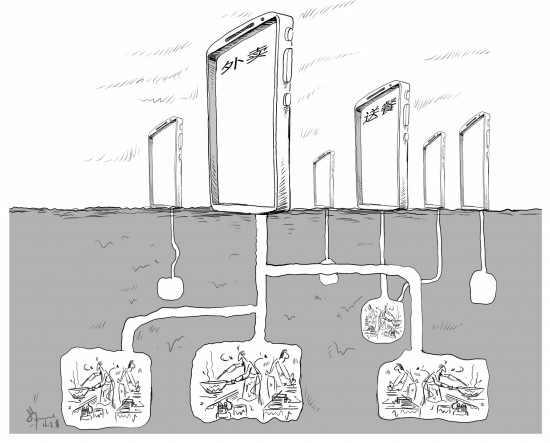 和互联网约车类似,外卖平台是互联网共享经济模式的代表。在没有外卖平台的时代,尽管也有餐馆提供外卖,但是因为呈分散化经营,一般只有电话点餐,用户体验较差,外卖并未形成气候。外卖平台将提供外卖服务的餐馆集中起来,在客户端提供菜品的图片、价格,而且用户可以从容地用手机App选择餐馆,很快将外卖发展成为主流的餐饮经营模式。