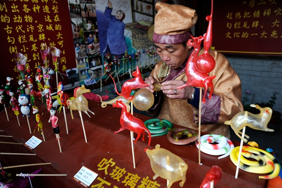 不管啥时候,他的糖画摊总是围满了人。陆爷爷的糖画手艺可真不是吹的,从祖上传下来可是有着200多年的历史了。甭管是刚学会走路的孩子,还是时尚朝气的姑娘小伙儿,抑或是豁了牙拄着拐的老太,都喜欢买上一根开心地舔着。