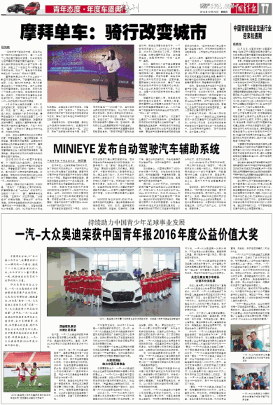一汽-大众奥迪荣获中国青年报2016年度公益价值大奖