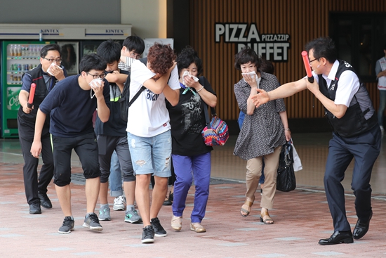 8月23日下午2时,在包括首尔在内的韩国40个城市里,有色烟幕弹等道具营造出如同真实空袭般的气氛,当地民众正在参加一场应对朝鲜战斗机、导弹或大炮等武器对韩国发起空袭的避难演习。这是本月21日开启的韩美“乙支自由卫士”(UFG)联合军演的一部分,也是韩国今年举行的第一次民间防空避难演习。