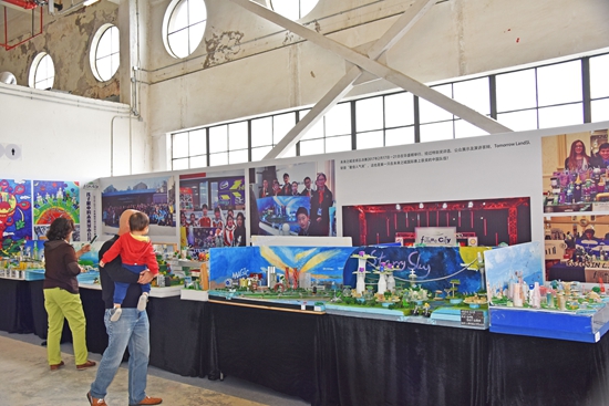 10月17日,上海,民生码头8万吨筒仓变身艺术秀场,市民在参观2017上海城市空间艺术季展览。视觉中国供图