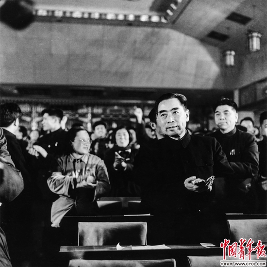 1955年12月,周恩来总理在北京中南海怀仁堂出席纪念“一二·九”集会。铁矛/摄