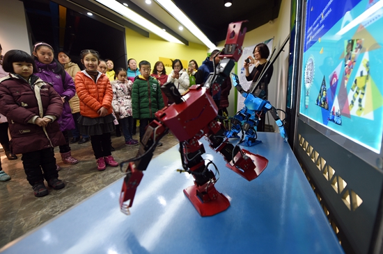 寒假生活刚刚开启,甘肃省兰州市的一些孩子在家长的陪同下走进少儿创客教育小课堂,体验人工智能产品。新华社记者 范培珅/摄