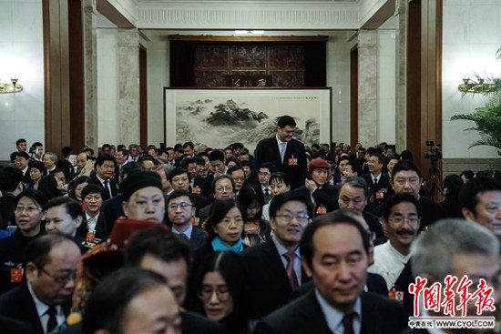 3月15日上午,北京人民大会堂,全国政协十三届一次会议闭幕会结束后,委员走出会场。中国青年报·中青在线记者 赵迪/摄