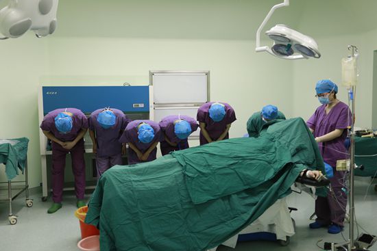 医务人员向器官捐献者徐亮(化名)鞠躬致敬。(安徽医科大学第二附属医院供图)
