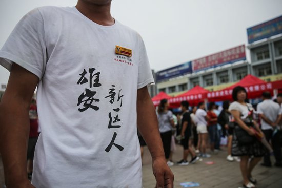 新区的商场内随处可见印有“雄安村民”、“雄安新区人”字样的T恤。不少当地人还议论着“冀F”牌照是否能升级成“雄A”。
