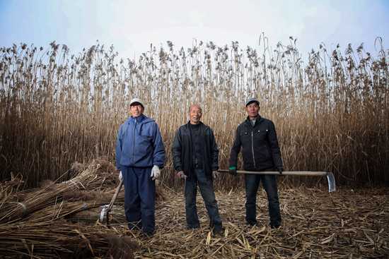 2017年11月19日,白洋淀的苇农们。近年来,不少苇农进城打工,大片芦苇被遗弃。雄安新区管委会表示,希望社会各界能就白洋淀芦苇综合治理提出建议。
