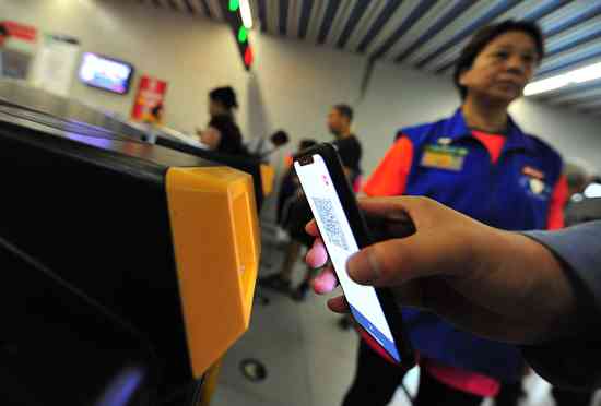 4月29日起,北京市轨道交通全网(不含西郊线)开启刷二维码乘车。图为北京地铁,乘客通过刷二维码进站。视觉中国供图