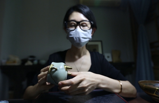 7月12日,陕西省西安市南门外,80后的栗子在金缮工作室里。因为共同的爱好和理念,两年前3位来自不同地方的女孩儿在西安成立了她们的工作室,开始了金缮修复的梦想。金缮是运用纯天然材质修补残缺器物的工艺名称,金缮修复有很广的适用范围,用作于瓷器和紫砂器居多,除此以外也可以用作于竹器、象牙、小件木器、玉器等。视觉中国供图