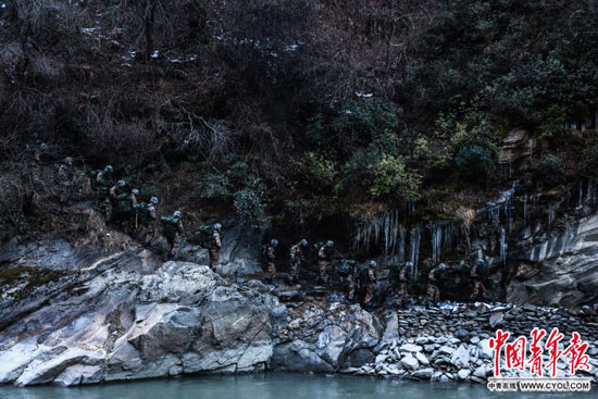 •     1月10日,西藏自治区山南军分区边防某营,战士正在执行巡逻任务。