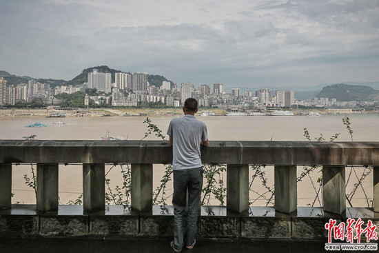 7月29日,重庆市万州区移民广场,一名男士站在桥边远望长江。20世纪90年代初,因为国家兴建长江三峡水利枢纽工程,100万多名移民叩别故土,举家迁往外地。据了解,其中万州移民26.3万人,是移民人数最多的区县。