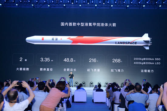 今年7月初,“水立方”音乐轰隆,台下手机闪光连成一片,上一批站在这个台上的是孙楠和李宇春。16盏射灯照耀着当日的明星:一台两人高的火箭模型,“朱雀二号”中型液氧甲烷运载火箭。全系统设计工作已经完成,计划于2020年首飞。