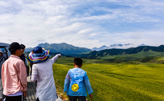 盛夏时节,新疆天山南北景色不同,引人入胜。新疆自然景观奇丽、文化资源丰厚,拥有浩瀚沙漠、葱郁绿洲、巍峨雪山等众多特色鲜明的旅游资源,一年四季都具魅力。数据显示,2017年,新疆接待国内外游客1.07亿人次,同比增长32.4%,旅游综合消费实现1822亿元,增长30%。目前,越来越多的国内外游客选择来新疆游玩。