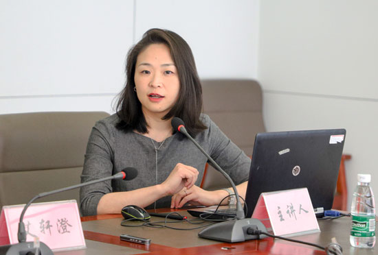 费怡向大学生记者讲述审计联合国的经历。中央财经大学 田心若/摄