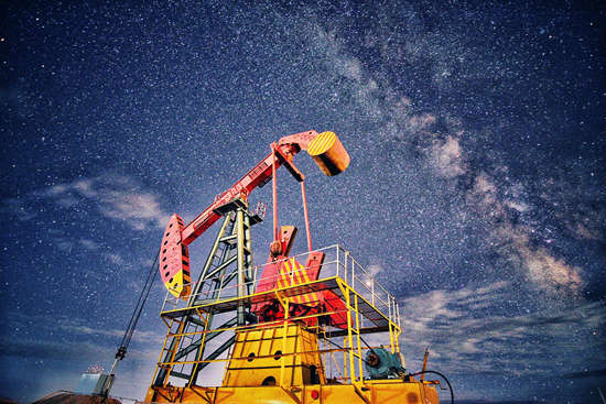 8月17日,青海海西州,尕斯库勒油田,星空下繁忙工作的采油机。杨少川(南开大学)/摄